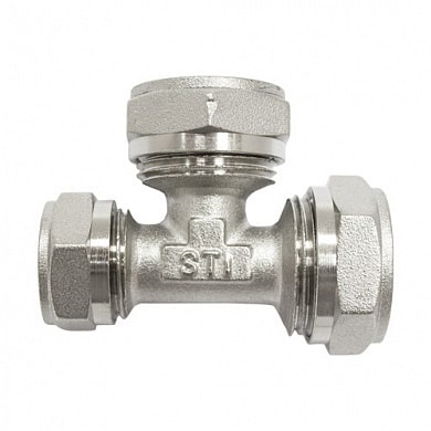 Тройник STI обжим 20x20x16 предназначен для соединения элементов металлополимерных трубопроводов для внутренних систем отопления, горячего и холодного водоснабжения, сжатого воздуха, транспортировки различных сред неагрессивных к материалам трубопровода, методом обжима.