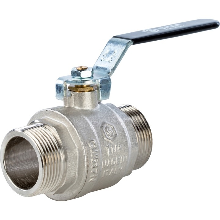 Кран шаровый Stout 1 1/4 НР/НР ручка-рычаг полнопроходной SVB-0005-000032 используется в системах водоснабжения, отопления и кондиционирования. Корпус крана выполнен из никелированной латуни. Шар имеет хромированное покрытие, надежно защищен от механических повреждений и коррозии. Уплотнение в кранах Stout выполнено из фторкаучука (FPM), который отличается высокой химической стойкостью и температурной стабильностью и из тефлона (PTFE), который обладает высокой тепло- и морозостойкостью, остаётся гибким и эластичным при температурах от -70 до +270.