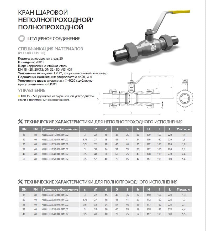 Кран шаровый LD штуцерный КШЦШ ст. 20 Ду40 Ру4,0 полнопроходной - купить по цене от СпецТеплоВод