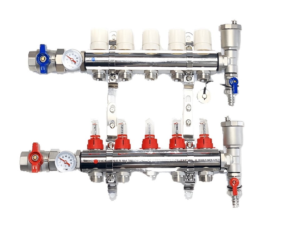Коллекторная группа TIM 5 выходов из латуни c расходомерами в сборе - купить по цене от СпецТеплоВод