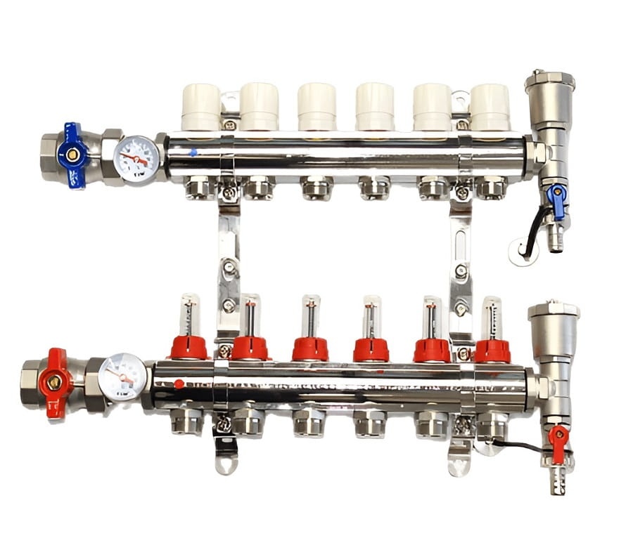 Коллекторная группа TIM 6 выходов из латуни c расходомерами в сборе - купить по цене от СпецТеплоВод
